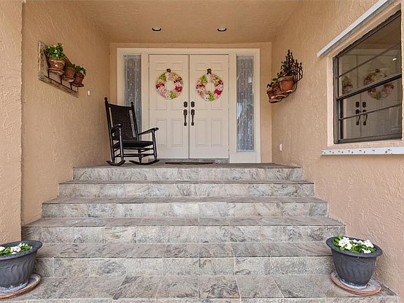Welcome to this 3-bedroom, 2.5-bath home in Wedgewood Estates with over 2,400 sq. ft. of living space. The first floor features engineered hardwood and a powder room with travertine marble and an Ethan Allen vanity. The kitchen boasts custom wood cabinetry, under-cabinet lighting, granite counters, slate flooring, a center island with Verde Mare marble, and a Franke stainless steel sink plus a gas cooktop and high-efficiency exhaust. The living room has a marble fireplace, while the primary suite offers a Jacuzzi tub, dual Ethan Allen vanities, and slate flooring. A brick sunroom overlooks the canal, perfect for relaxing. Highlights include hurricane shutters, impact doors, a 500 gallon propane tank, remote controlled fireplace, and new AC. With a canal-front lot and lake view