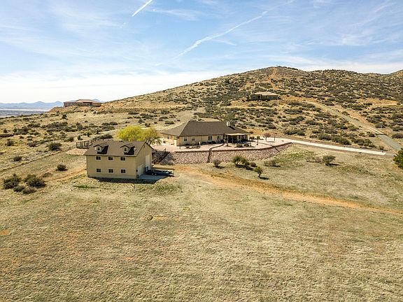 Stunning Custom Home on 6+ acres! Gorgeous views of Mingus Mtn., Bradshaws and the Valley from inside the home and the beautiful patio. Huge 3-car attached garage and separate 40'x40' RV & Auto Garage with a ''man cave'' on the upper level! RV garage has a pellet stove on the main level for heating. This home sits atop a newly chip-sealed lane. The property is completely fenced with a fully irrigated garden area, and an electronic security gate entrance. Beautifully arranged home with 3 BR split plan, Gourmet kitchen, with custom cabinetry, and high-end appliances. Formal dining and separate breakfast room. Many custom built-ins (Alder) t/o the home. High quality black walnut hardwood floors in Living Room, Office, Kitchen & Dining.