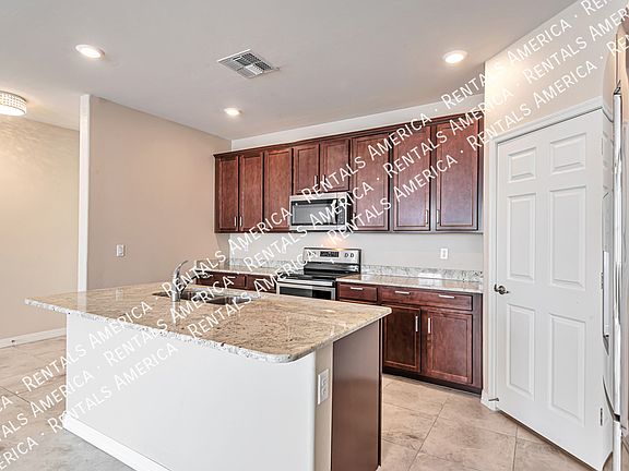 This stunning 4 bedroom/2 bath home is available today. Upon entering, you'll notice the spacious and open living area with beautiful tile flooring. Kitchen will be a chef's delight with ample amounts of cabinet and counter space, a breakfast bar and stainless-steel appliances. This is a split bedroom floorplan with a large primary suite on one side and 3 bedrooms on the other. Home includes all appliances plus a water softener. The backyard is super low-maintenance with views of the Catalinas. Home has wonderful upgraded features throughout and is tucked away in a quiet community yet close to all conveniences. Please contact Rentals America Tucson for the gate code.