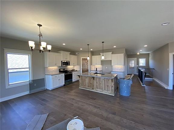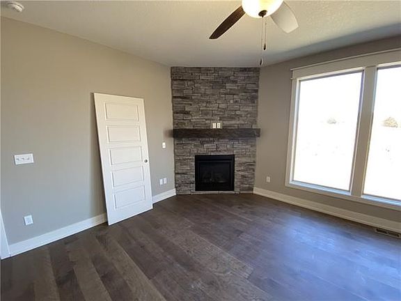 This new construction home is complete and move-in ready. This spacious reverse 1.5 Ashton II by Dwight Friedley features a main floor master suite. Enjoy entertaining in the open kitchen and living room. Features include granite countertops throughout, walk in pantry, extra-extra large master bedroom with engineered hardwoods, walk-in closet, and mud room. Guests will appreciate the main-floor master suite. Enjoy the additional three large bedrooms and two full bathrooms in the lower level that surround a recreation room with decorative bar and space for a full refrigerator. Host guests for the Super Bowl in the finished, walkout basement and cozy up by the stone fireplace in the great room during the holidays. The covered deck with ceiling fan makes for cool summer nights. A well-landscaped rock wall surrounding the covered patio in the backyard makes a great spot for outdoor dining. All square footage estimated.