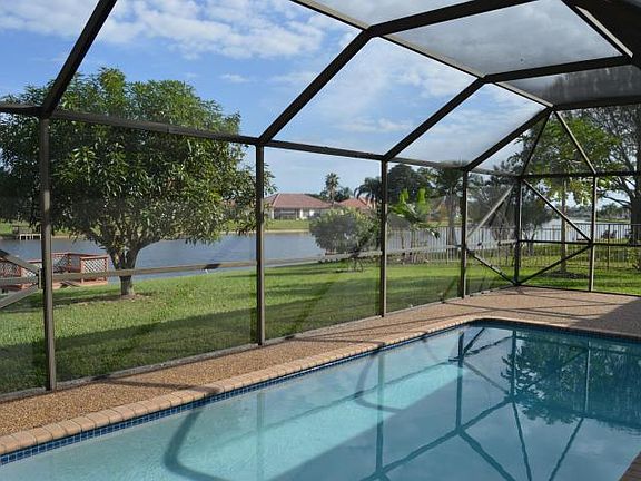 Amazing lake view from large screened patio with pool and outdoor living area. Your own dock to enjoy watching sunsets! Great outdoor living space for experiencing the Florida lifestyle. Large living room with new neutral tile overlooks pool patio area. Kitchen has granite counter tops and newly installed high hats and brand new dishwasher and microwave. Hurricane accordian shutters. Close to shopping and great schools. Come see today!