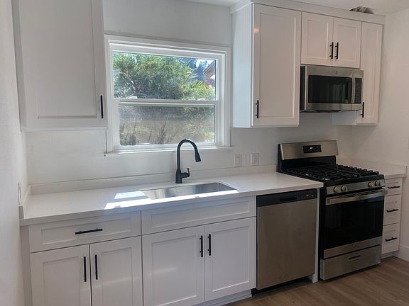 Newly remodeled home; corner lot in a nice neighborhood close to the 91, Cal Baptist and UC Riverside. Large back patio, and lots of street parking available. Master bed has ac unit, large closet, and walk-in shower. Fourth bedroom is finished detached garage with a/c. Bonus closed-in patio off the living room. Brand new flooring, recessed lighting, and fresh paint throughout house. Kitchen has new stainless steel range, microwave, dishwasher and sink, new windows, and new custom cabinets. Bedrooms have new ceiling fans and brand new windows. Bathrooms have new tile in showers, new tub, new fixtures. Available for viewing October 11, or by appointment. Open house October 22. Owner pays for water/sewage. Renter is responsible for gas and electric. One year lease. No pets. No smoking. Security deposit and first month due at lease signing.