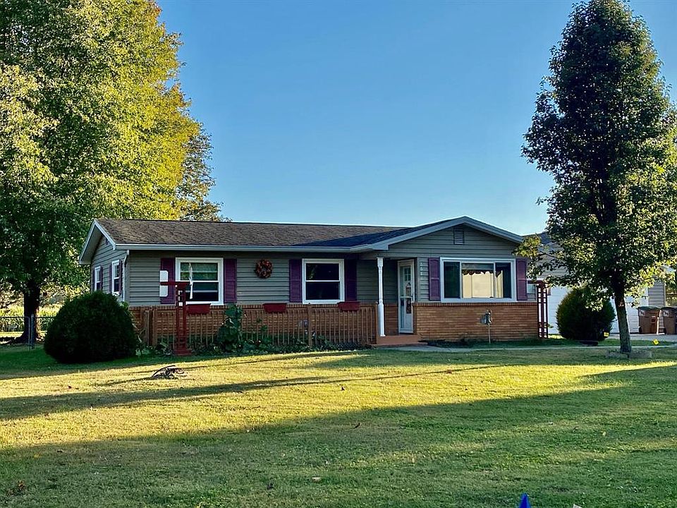 3 bedrooms, 1.5 bath ranch home in the country. Oversized 2.5 car, 26x36 garage. Updates all within past 2 years: white kitchen cabinets w/soft close drawers, pantry & granite countertops, stainless gas oven/range, refrigerator, built in microwave, flooring in kitchen & both baths, all new windows, exterior doors, sliding door w/screen, tankless water heater, upgraded 220 electric, ceiling fans. Both baths updated, tile enclosure, tub/shower, toilet, bluetooth vent fan, vanity, plumbing for laundry rm, dryer vent. Crawl space floor joists re-supported, dehumidifier, sump pump, vapor barrier, french drain installed. All duct work replaced. New 16x10 man cave/she shed with loft & electricity. Large fenced yard with deck overlooking farmland.