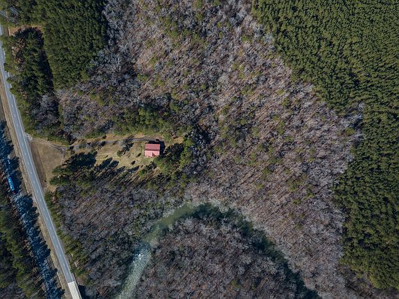 Shown by private appointment only. Looks like a painting - white farmhouse with red shutters and red metal roof sitting on a beautiful knob overlooking fresh fast-flowing Hatchet Creek. Appx 17.2 acres of hardwood forest surround this gem; has about 900 feet of frontage on Hatchet Creek. Home has been lovingly kept. Hardwood floors. Crown molding. Fireplace. Screened Porch. Sun room. Instant hot water system. Large outside storage building. You'll so enjoy the peace this special place brings. Drink your morning coffee on the deck overlooking the creek. Surrounded by timber company land, this property is one of a kind.