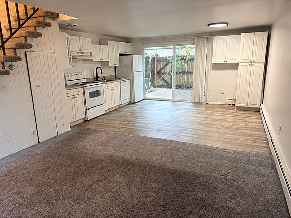 There is a spacious living area (12x14) directly connected to a large kitchen (12x12) with a dishwasher. This unit has a small storage closet as well as a fenced 16x16 patio, accessed by a sliding glass floor. There is ample parking right out front. This unit is part of a 4 plex, within a larger 3 building property. It takes 5 minutes to get to Home Depot, Costco and I70 for quick access to downtown. Tenants must pay for electricity and a shared $75 fee for heat/hot water/sewer. Common area has coin operated laundry. and Trash comes weekly. The RTD W Line is within a 5-minute car ride as well.