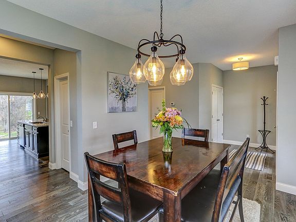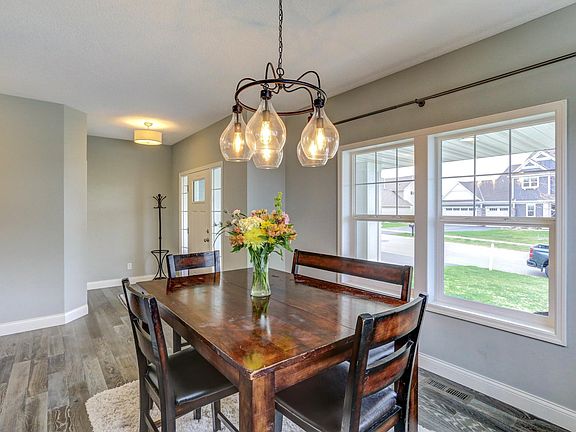 Turnkey Walkout Two Story in Lakeville's Regal Point. Large treed lot for all activities! No need to wait for new construction. Enjoy an open main level with useful spaces, large windows with modern finishes. This floor plan does not waste any room and is centered with the beamed Great Room. A galley style kitchen features a large island, stainless appliances, and an abundance of storage with pullouts and pantry. Additional main level upgrades include enameled cabinetry, granite tops, gas fireplace, office nook off mudroom, flex dining, and a niche foyer design. Four grand sized bedrooms share the upper floor with large laundry! The Master retreat has a large walk-in closet and bright bath with separate tub and shower. The walkout lower level is finished with a family room, 5th bedroom, 3/4 bath, and bonus storage areas. Its oversized lot bordered by trees is perfectly situated in the heart of Lakeville. Close to parks, fields, playgrounds, schools, shopping & restaurants.