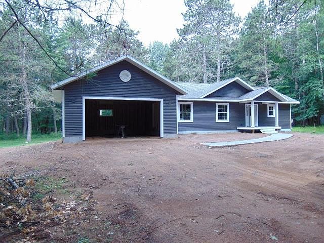 Woodruff/Minocqua area new home. This 2 plus bedroom 2 bath home is in a super convenient area off Denise Drive and sits on a little over an acre if land. Bring your ideas and your finishing touches to complete this home. The home has a great floor plan with the master bedroom suite on one side of the home and the other bedroom on the opposite end. The open concept allows for a snack bar between kit and living/dining area. The lower level could have the 3 rd bath and a 3rd bedroom with the ingress/egress window. There is main floor laundry and mud area off the attached garage side and a nice entry for guests in the center. This will have the landscaping done, all cement poured in garage with an apron and a walkway to entry. Your builder can have this completely finished for you by end of September. OR bring all of your family and contractor friends to do the job and save some money! Priced at $159,90