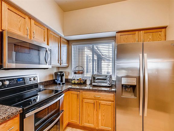Beautiful 3 bedroom 2 bath condo with stunning Mountain and Sunset Views. Newer condo building in this area, built in 2004. Very well cared for condo in "Like New" condition with new paint and new carpet. This condo is on the 3rd level (so there's nobody above you) and has a 2 car covered detached carport, space 8 & 9. Central Air Conditioning. Open kitchen with granite counters, kitchen bar area and NEW Stainless Steel appliances included! Large living room with a gas log fireplace and a dining area. Master bedroom with a private master bathroom and a spacious walk in closet. 2nd and 3rd bedrooms are quite large. Full bathroom, nice open layout. This condo is minutes to I-25, I-36, hospital, 20 minutes to Downtown, 25 minutes to Boulder, Close to the RTD bus station (Covered Park & Ride). This is a great location! Condo is not FHA approved.