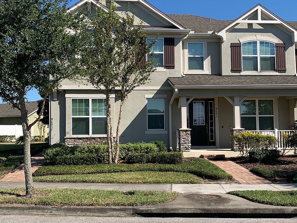 Beautiful 3 bedroom 2.5 bath two-story townhouse in Windermere Trails subdivision of Windermere. This home comes complete with a detached 2 car garage and a private brick paved courtyard. The first floor features all wood flooring, living room, dining room, and open kitchen. In the kitchen, you'll find granite countertops, stainless steel appliances, and spacious cabinetry. The master bedroom is also located on the first floor and features a roomy walk-in closet, while the bathroom features a glass-enclosed shower stall, a double sink, and a private toilet. At the top of the carpeted staircase, you'll find an open loft and a laundry room with a modern washer and dryer. The entire second floor is carpeted and the upstairs bathroom comes equip with a bathtub. Ceiling fans are included throughout the home. Conveniently located to Disneyworld, I4, SR429, Turnpike, and SR408. Amenities include a huge community pool, playground, and picnic gazebo. Brand new Bay Lake Elementary School is close by. **BONUS INCLUDED** A portion of the tenant's total amount due will be used to have HVAC filter delivered to the residence approximately every 60 days under the Utility Maintenance Reduction Program to help you save 5-15% of your heating and cooling bill as well as create a healthy living environment. No pets please. Call now to view the property. By appointment only.
