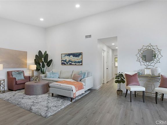 Welcome home to your completely remodeled, single story Laguna corner unit with only one shared wall and the best location in the most exclusive and sought after 55+ active adult community of Huntington Landmark just one mile from the beach. It has been fully renovated with modern designer finishes. This most popular largest floor plan features 3 bedrooms, 2 bathrooms, vaulted ceilings, an abundance of natural light, plantation shutters in all bedrooms, and an open floor plan with a large outdoor patio. All new upgrades include: water resistant laminate flooring, recessed lighting fixtures, newer dual pane windows, textured scraped ceilings, fresh interior paint, newer copper piping, and a newer Air Conditioning system. The redesigned kitchen features white shaker cabinets with soft close drawers and matte black hardware, two pantry cabinets, light gray quartz countertops with a full tiled backsplash, a single porcelain farmhouse sink, and new stainless steel appliances. The luxurious bathrooms feature white shaker cabinets with soft close drawers and matte black hardware, Grey Calcutta River quartz countertops, under mount sinks, matte black faucets, matte black shower heads, custom frameless shower doors with matte black hardware, large chevron tile soap boxes in the showers with brand new tile surrounds. The master bedroom also features a large walk-in closet and dual sinks for plenty of storage. The laundry closet is located on the patio with a gas BBQ. There is a one car detached garage just around the corner. Landmark residents enjoy the exclusive amenities of 2 Olympic size pools & spas, pickle ball and lighted tennis courts, ceramic and wood shops, community events, expansive greenbelts, BBQs, a billiard room, ping pong, a fitness center, basketball courts, wood shop, and organized activities including bingo, aquatic classes, shopping excursions, concerts, holiday parties and movie nights. HOA covers trash and water! Don’t miss this opportunity to live in the most popular 24 hour guard gated community just minutes to the ocean!
