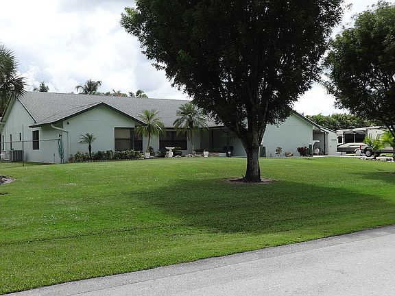 Welcome to the Palm Beach Ranchettes; an acre of property in town. Bring your boat, RV, truck, horse, etc. No HOA. Shopping, restaurants and great schools close by. This 4/2/2 is spacious and great for entertaining and raising a family. PROPERTY DETAILS: Built in 1989; Lot size is 1 acre; Living sq. ft is 2,701; 3,811 total sq ft; total sq ft including out buildings: 5,264. FEATURES: Screened pool with solar heating, Stainless steel appliances, Quartz countertops, Full sprinkler system, Fenced back yard, Lush landscaping, Vaulted ceilings in living areas, 5-camera security w/ video recorder, Pole barn, 1-car detached garage, Washer & dryer, Refrigerator in garage, 50-amp plug for RV, Double-pane windows, & Hurricane shutters. DIMENSIONS: Living Room - 16 x 17; Family Room - 14 x 24.5; Kitchen - 11 x 13; Dining Room - 12 x 13; Master Bedroom - 14 x 17; Bedroom 2 - 11 x 14; Bedroom 3 - 11 x 13; Bedroom 4 -: 11' x 14'; 2-Car Garage - 22' x 24'; Back Porch - 12' x 32'; Pool Deck - 26' x 52'; Pool - 15' x 30'; Detached One-Car Garage - 12' x 30'; Pole Barn with 12 x 12 Shed - 28 x 39. Call Shelley Lomastro for appointment to view at 561-601-4980.