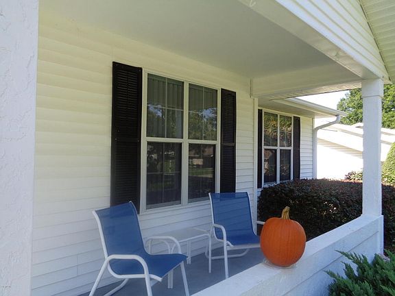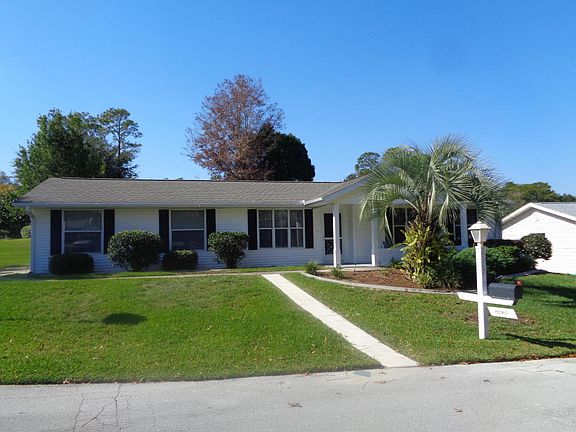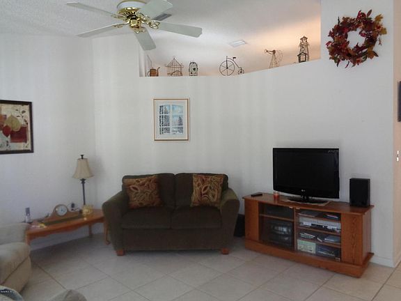 Pristine Hampton 2/2/2 with tile floors in kitchen, living room, and dining room. Roof 2005, A/C 2006. Acrylic enc lanai with heat and air. King size master bedroom with walk in closet, 0n suite bath with step in shower and new high boy commode. Beautifully landscaped with curbing around all landscaping and a new sidewalk to mailbox, side garage that is screened and has built in storage. Updated slate finish appliances (better than stainless steel), upgraded beige formica counters, tons of counter space and pantry in kitchen. Guest bath updated. New custom window treatments and new blinds, great corner lot with side garage. Close to indoor pool. This home is move in ready.Click on Virtual Tour.