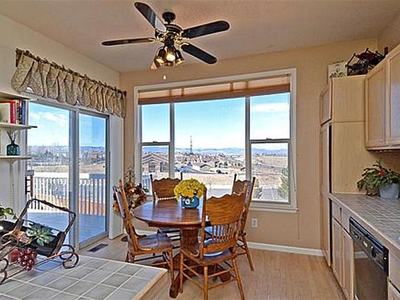 Popular Ryland home features 3 beds up, vaulted family room plus formal living and dining rooms with a walk-out basement and mountain views! Make this home your own with just a little TLC and updating. C-470 is in the distance, but seller says you can't hear it inside the house. Kitchen has black appliances including smooth top stove, plus kitchen island and eating space. Master boasts five piece bath with jetted tub and walk in closet. Other two bedrooms share a jack and Jill bath. Newer roof, fence and water heater, newer backyard landscaping including dog run. No homes directly behind to enjoy the sunsets.