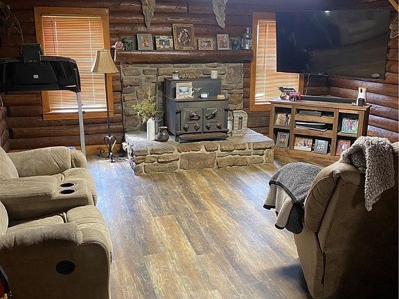 Oppurtunities like this do not come along very often. 20 acres just off the highway with cozy authentic log cabin and 20x30 shop. Walk out your back door and hunt 100 yards away. Property is wooded and has nice open level yard. Landscaping all around the cabin and partially around shop. Enjoy the evenings sitting around the fire pit. New central heat and air and roof in 2022. New waterproof luxury vinyl flooring. Leave from the cabin and have easy access to ATV trails all over the area. Country feel but only 10 minutes away from shopping. Don't let this opportunity pass you by! Property is agent owned.