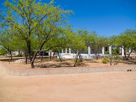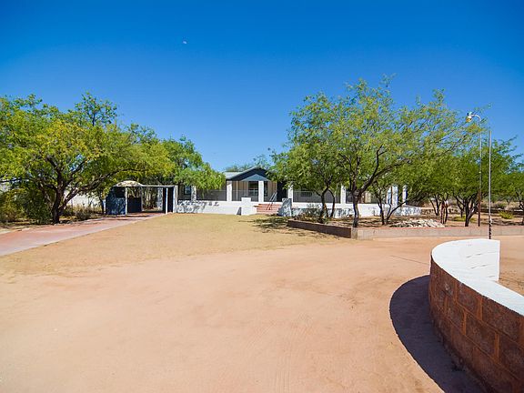 Vacant, sanitized, freshly updated manufactured home. Located in scenic Southwest Tucson location. On a one acre lot. New custom interior and exterior paint. A wonderful living room with light filled living. Rich wood laminate flooring. New carpet and padding in living areas and bedrooms. New appliances. Split floor plan. Walk in closets in each bedroom. Dual sinks in master bathroom. Wonderful lot with desert and sunrise/sunset views. Covered front deck. storage sheds. Brick BBQ. Shows like a custom home. Due to COVID-19, hand soap is provided to keep the public clean and safe.