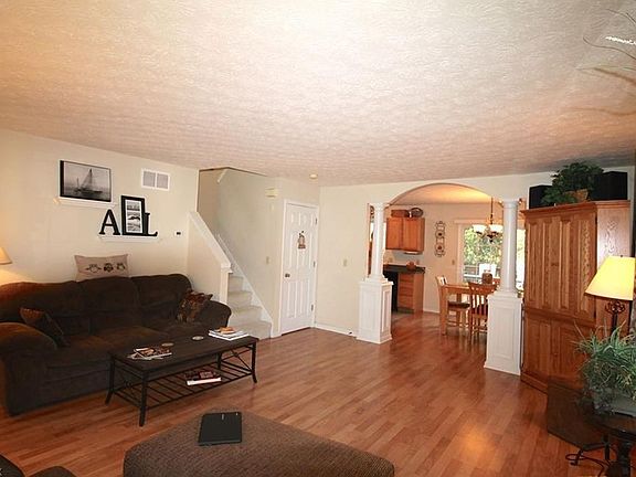 Gorgeous three bedroom, two and half bath Colonial with welcoming front porch. As you enter through the front entry way with hardwood flooring into the inviting large family room with beautiful laminate wood flooring and cozy fireplace to enjoy those chilly nights to come in the fall and winter. The first floor is open and airy with a nice flow into the dining room and kitchen. Lovely kitchen has nice oak cabinets with Wilson Art counters and a garden window to enjoy the outside while working in the kitchen or doing the dishes. Sliding doors off the dining room with wains coating will lead you out onto the beautiful 16x16 deck recently stained to enjoy those wonderful fall days. For your convenience a first floor laundry room on the first floor as well with plenty of storage. Second floor offers a beautiful master with walk-in closet and a master bath with vaulted ceiling and skylight along with two other bedrooms and another full bath. Partially finished lower level is plumbed for a wet bar for all your entertaining needs plus tons of storage. Newer hot water tank in 2016 as well as all modeling lighting throughout the home. Located on a quiet cul de sac street with newer homes is centrally located close to all the shopping and close to the highways. This beautiful Colonial can be yours but hurry it won't last.