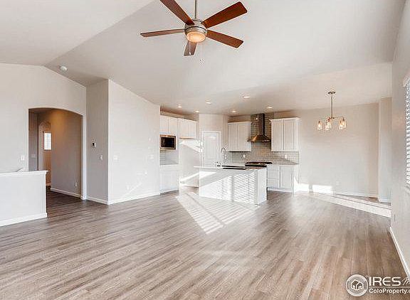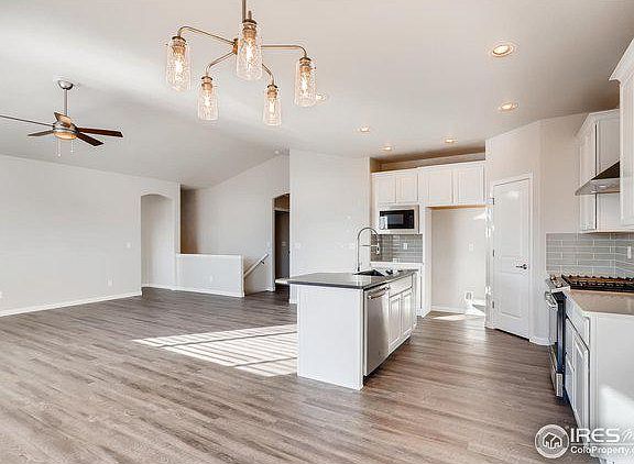 The Vail by Windmill Homes - Currently under construction and backs to open space. This Ranch style home features 3 bedrooms, 2 bathrooms and a massive 1600 sq ft unfinished basement. Completed with 10' ceilings, 8' doors and oversized windows this home makes a lasting impression. An open concept vaulted living room opens into a gourmet kitchen enhanced with premium white cabinets, quartz countertops and stainless appliances. A massive three panel slider opens onto a covered patio with mountain views! A tranquil master en suite is complete with frameless shower glass and modern tile work. This home is fully selected and includes front yard landscaping and AC!