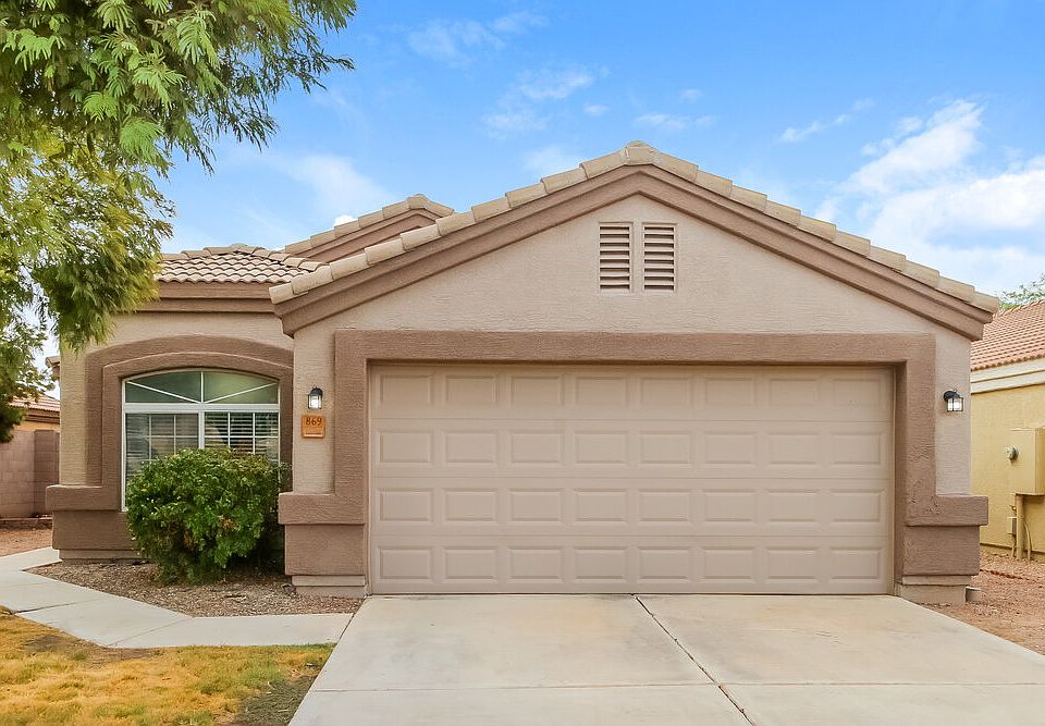 Please note, our homes are available on a first-come, first-serve basis and are not reserved until the lease is signed by all applicants and security deposits are collected. This home features Progress Smart Home - Progress Residential's smart home app, which allows you to control the home securely from any of your devices. Apply to lease this home by January 15, 2025 and receive $500 off your first full month's rent. Want to tour on your own? Click the "Self Tour" button on this home's RentProgress. This move-in-ready rental home in Chandler, AZ contains three bedrooms and two bathrooms within 1,310 square feet of space. Enjoy having a spacious and open plan living room complete with vinyl plank flooring and double glass doors leading outside. Notice the extra-high ceiling, too. Prepare your meals in a kitchen finished with white quartz countertops and sleek, stainless steel appliances. You'll have ample storage space thanks to the pantry. In the main bedroom, there's a lighted ceiling fan to supplement the home's central HVAC and neutral-colored walls for a modern feel. Step into the en-suite bathroom to find a sizable walk-in closet and a well-lit vanity. Exterior features include a spacious covered back porch and an attached garage. Schedule a tour of this property soon.
