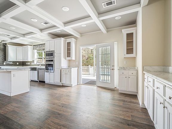 Welcome to Cross! Just minutes from beautiful Lake Moultrie, this stunning country estate sits on over 2 acres, offering both space and serenity. Only 5 years old, this custom-built manufactured home boasts 9' ceilings and an open floor plan designed for modern living. The gourmet kitchen features coffered ceilings, a center island, and is open to the spacious living room, which showcases a brick fireplace, custom cabinetry, and built-in shelving. The primary suite is a true retreat with tray ceilings, a luxurious ceramic tile shower, and dual vanities. Two additional large guest rooms provide comfort and space for family or guests. Step outside to your private backyard oasis, where you can relax on the deck while enjoying the pool. Three outbuildings offer endless possibilities!