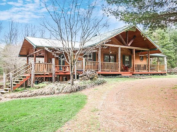 Check out this awesome lodge with a wrap-around covered porch located right off Cemetery Road! This home is a 4 bed, 4 bathroom, with a full basement and a workroom. Features an in-ground swimming pool, hot tub, a large living room and an additional 1.13 acres is available to add. Property sits on 5.85 acres, comes with a ton of privacy!