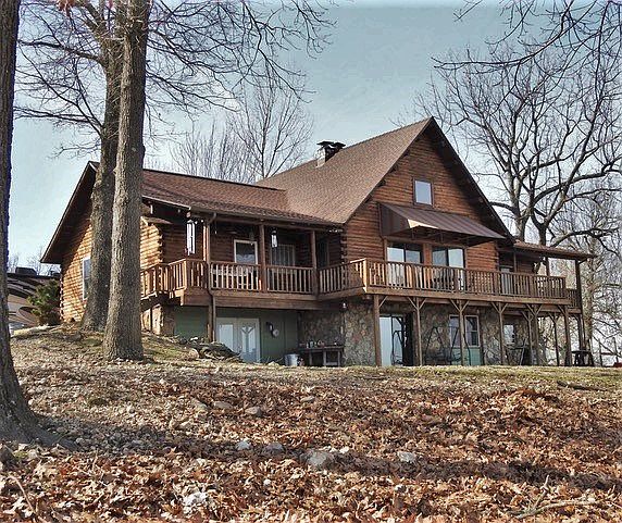Here is a Rustic Mountaintop Mecca located on one of Marion County's highest peaks with 360-degree views for almost 40 miles----also, has 180 degree/eagle's eye views of Bull Shoals Lake and 40 miles beyond (can see city lights of Branson MO only 45-minute drive away). Big 4,000 sq. ft. (includes finished basement) home near Peel AR. It has rustic interior with 25' cathedral ceiling featuring beautiful stone double Home has Congoleum-Duraceramic flooring throughout kitchen, dining, breakfast nook and utility room. Fireplace in kitchen and living room, 4 bedroom (1 loft, 2 on the main level and 1 in basement) 3 baths with master bath featuring eagle claw tub (with window views of lake) and beautiful 4'6 x 6' walk-in ceramic tile shower. Back deck has 2 sliding glass door entries from living room and 1 from master bedroom. 40' x 60' shop /implement building, of which 36' x 40' is insulated and has concrete floor. 200-amp electric service. Also has 30' x 30' pole barn to keep the "hay dry". All this on 36 acres, approx. 14 acres in pasture. 1 mile off St. Hwy at end of county-maintained road---AND SPECTACULAR VIEWS OF BULL SHOALS LAKE AND BEYOND. Priced @ $399,000.00
