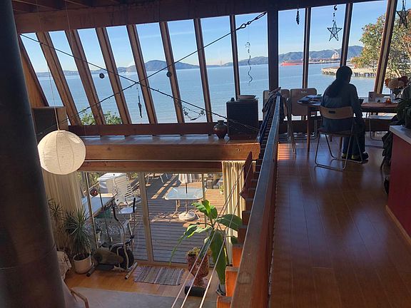 Rare beachfront property, 2 bedrooms, 2 baths, large living room space and spacious kitchen/dining room. Location and view of this masterfully crafted 1962 original are hard to match. Private beach access to the Bay, for kayaking and swimming. Stunning views of the Golden Gate Bridge and SF sky scrapers from the large window front or the new redwood deck. There are several places in the house that can be set-up for office space, in light of modern ways of working. A third room is available as a hobby room, if desired. Centrally located between Berkeley and Marin, Ferry to SF close by. Quiet and peaceful surroundings. Owners travel for work and live on site for a maximum of 3 months/year. You rent a 2000sqft house fully furnished, with a mix of vintage and modern appliances (dishwasher, washer and dryer included). We are looking for reliable tenants, who will feel and treat this gem as their home. Owners travel for work and live on site for a maximum of 3 months/year. Would love some plant care. Utilities included.