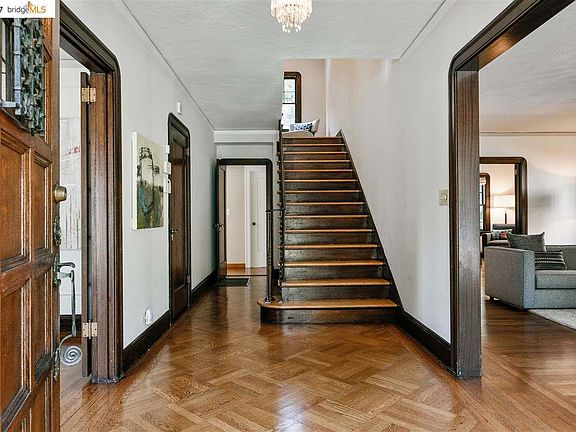 Exquisite Crocker Highlands home with elegant entertaining spaces, formal living and dining rooms, updated sunny chef's kitchen, with granite counters and SS appliances, that flows to a deck overlooking an expansive backyard. Vintage details include pristine oak floors, large arched picture windows with beautiful wood trim that perfectly blend with the contemporary updates for today's needs. Dramatic staircase leads to 3 spacious light-filled bedrooms and 2 baths on the upper level. Lower level has wonderful au-pair with private entrance, sitting room and full bath. Don't miss the expansive bonus room, perfect for play or family time, that opens to the level backyard through French doors. Mins to Grand Lake & Lake Merritt shops & restaurants, highways & more. Open Sun 2pm-4:30pm.