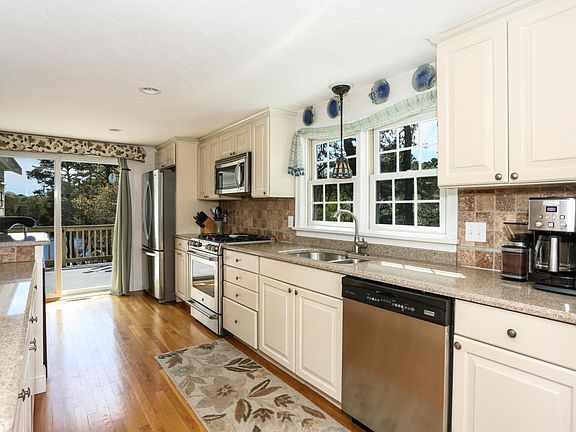 Enjoy your morning coffee overlooking a serene pond from the Juliet deck off of the master bedroom. Or partake of a beverage of your choice and appreciate the sunset from the large stone patio. This 3 bedroom, 2.5 bath home features stainless steel appliances, a first floor master, two large bedrooms on the lower walkout level, hardwood floors and California closets throughout. The exterior includes a 6 person Nordic spa, raised bed gardens and solar panels. Canoe, kayak and fish from your private waterfront area or sit in your Adirondack chairs at the water's edge. Property is in the Great Sand Lakes Association, which owns and maintains the beach areas and monitors water quality.House to be sold partially furnished. Total square footage includes 1344 sf on 1st floor(field card) and 624 sf (owner) of finished basement bedrooms and bath.