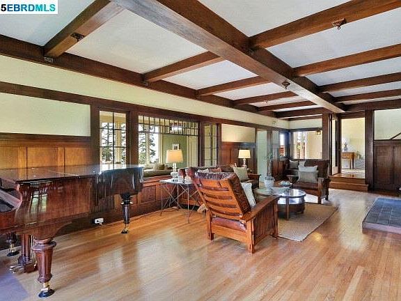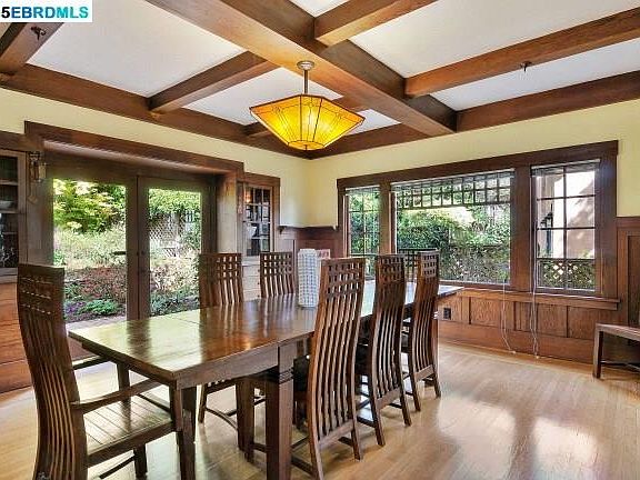 Classic Arts & Crafts style with gorgeous original detailing, liked stenciled box beam ceilings & built-ins. Updated kitchen and bath. Gorgeous level out yard and sweeping San Francisco Bay views.