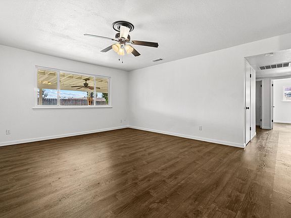 This delightful home is an entertainer's dream, featuring multiple living spaces, a large backyard, and OWNED SOLAR. The interior has been freshly painted and offers a charming breakfast nook, formal living room with a fireplace, and a family room. The bedrooms are conveniently situated down a hallway, with the primary bedroom boasting an extended closet and private restroom. Outside, the sizable backyard includes an oversized covered patio. Enjoy easy freeway access and a central location close to Porterville's main amenities. This property offers the perfect blend of comfort and entertainment potential.