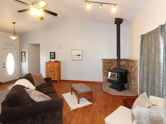 Open concept floor plan, vaulted ceilings. Panoramic Views! If you are looking for a peaceful neighborhood with acreage, you've found it. Nearby forest access, picturesque views, and space to play and store your toys. New roof in 2017. New interior and exterior paint 2016. This house also has Air-conditioning for the summer and a Blaze King wood stove to keep you warm in the winter. There is a fenced area for animals, an attached two-car garage with an additional one car garage. A wood storage and additional carport for keeping your treasures out of the snow. This cute home will not last so make your appointment right away! Seller is a licensed realtor in the State of Arizona.