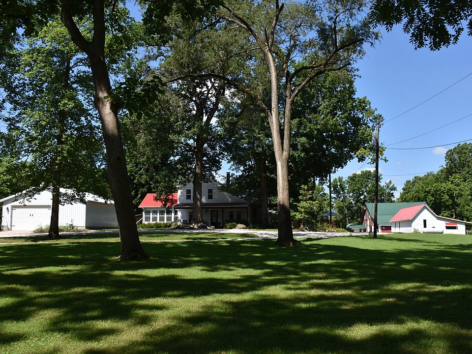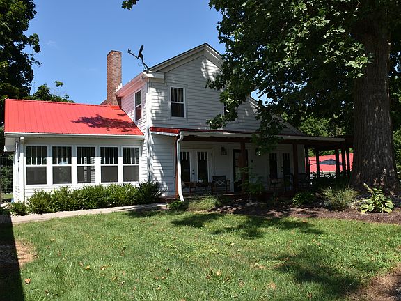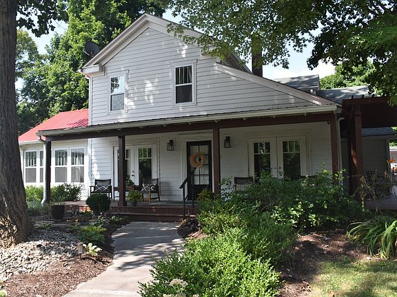 Charming 1888 All-American Farmhouse on 9.46 Acres - Updated with Modern Comforts & Timeless Character. Step into history with this beautifully updated 4-bedroom, 2.5-bath farmhouse, originally built in 1888 and thoughtfully restored to blend classic charm with modern convenience. Nestled on 9.46 picturesque acres, this home offers a peaceful rural lifestyle just minutes from modern amenities. Inside, enjoy a bright new sunroom extending from the large great room with wood burning stove. Primary/master suite on the main level with built in cabinet and fireplace & gorgeous bathroom with walk in tile shower. Cozy sitting room or in-law quarters with built in window seat to watch those sunsets. An inviting kitchen with new upper cabinets & shiplap walls give farmhouse nostalgia. The upper level retains its original wood floors, adding warmth and character, while the updated baths provide modern style and comfort. Dedicated upper level office or hobby space and a "secret" staircase! The property features multiple outdoor living spaces including a covered front porch, side porch, and a spacious deck-perfect for relaxing or entertaining. Cool off in the pool, unwind in the hot tub, or stroll the grounds shaded by mature trees. Equestrian or hobby farm dreams? A large heritage barn with stalls, fenced pastures, a hay field, orchard, and a charming old summer kitchen await. There's also a storage barn for your tools and toys, plus a new heated/cooled 3+ car garage wired for an EV charger for today's needs. Additional updates include new composite exterior siding, a high-efficiency heat pump, and a new well pump. The front yard is partially wooded for privacy, while the fenced backyard offers peace of mind for kids and pets alike. This one-of-a-kind property offers space, history, and lifestyle-don't miss your chance to own a true slice of Americana.