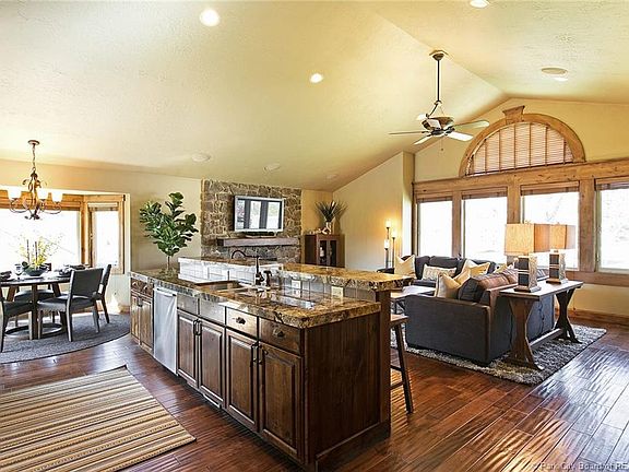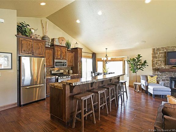 Rarely will you find a home of this construction quality and upgrades for the value. Imagine dining al fresco while sitting on the 2nd green of the Jeremy Ranch Golf Course, or hosting friends in your entertainers kitchen. This home was tastefully remodeled by its designer-owner and the attention to detail shows. Thick granite countertops, stainless appliances, solid wood cabinetry with down-lighting, vaulted ceilings, Alder base and case, hardwood floors, new carpet, security system, dual furnaces and water heaters, custom closets, wood blinds, and fresh landscaping are some of the high points. All bedrooms are wired for audio and the living room features its own surround sound system. A lush, flat yard and bus stop across the street are great for kids and Jeremy Ranch Elementary is 3 minutes down the road, close enough for a bike ride. The unexpected golf cart garage can hold as much gear as you can bring; bikes, paddle boards, quivers of skis or sets of clubs for the whole family.