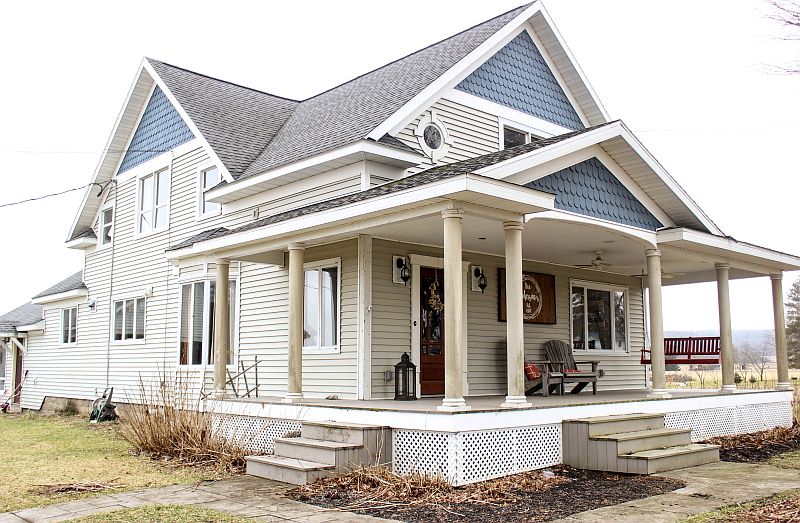 Gorgeous home with waterview. Hardwood & ceramic floors, pocket doors, beautiful woodwork, 1st floor master suite with double-sided FP, cherry kitchen w/granite island & all appliances stay, formal dining area, 1st floor laundry, great room w/cathedral ceilings & pellet stove plus french doors to stamped patio. Relax on the wrap around covered porch, enjoy the 3 car oversized garage (can fit 6 cars tandem style).Tons of storage, no neighbors behind you, close to the Peek N Peak resort. CALL NOW!