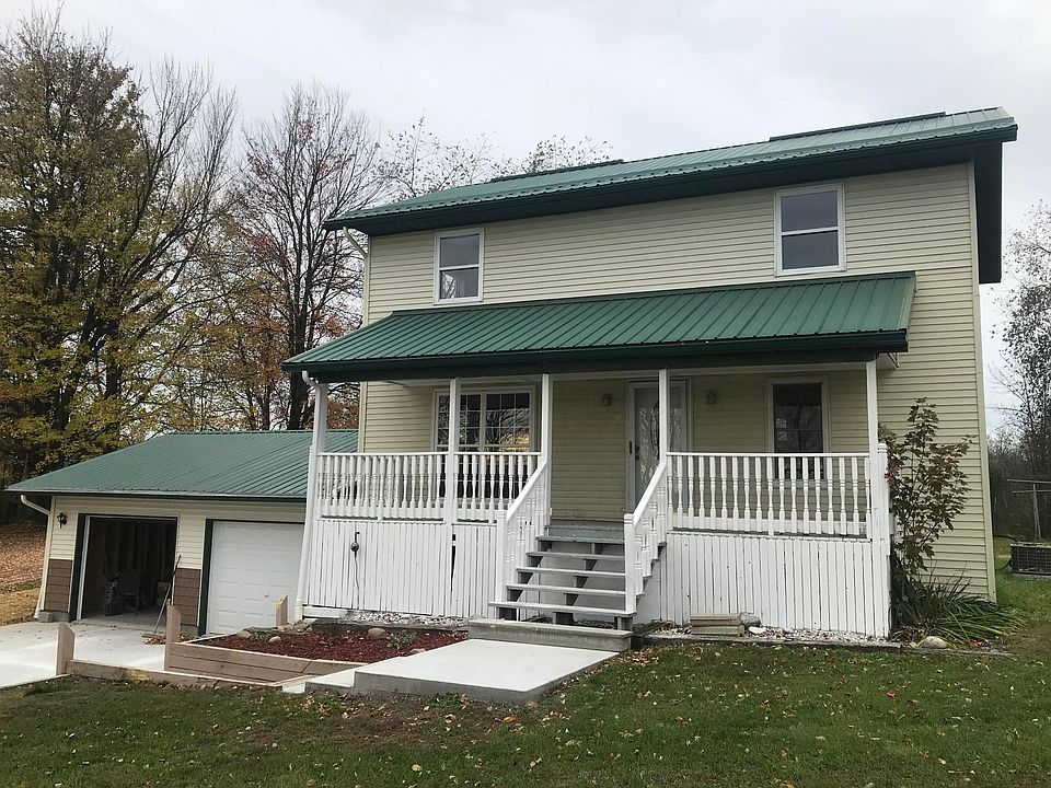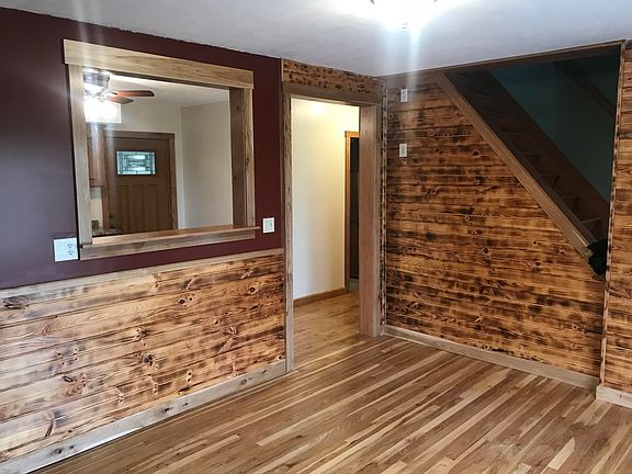 WOW, Just like Brand new home sitting on 36 wooded acres with a creek running through the property. This home is a total remodel, featuring new drywall and paint, new Amish built cupboards, hardwood , flooring through out including oak, Maple and Hickory, all new hardwood trim and windows, Brand new attached 2 stall garage.Also features main floor laundry, main floor full bath ,formal dining room, covered front porch. 2 large bedrooms and 1/2 bath up stairs, rooms are big enough to be split for more bedrooms. Acreage is fantastic hunting.
