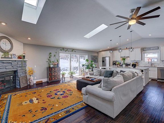 Fully finishedOpen concept floor planUpdated interiorStorage shedBreakfast barCustom cabinetryWood burning fireplace