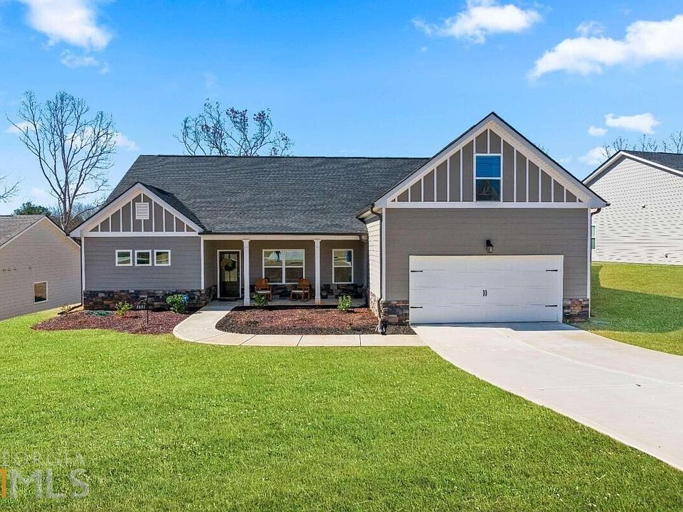 The Kennedy Ranch floorplan - has 4 bedrooms, 3.5 bathrooms with a teen suite with 2, 510 SF of living space upstairs and view of 13th home of the golf course from the backyard. Beautiful open concept kitchen family room design, formal dining room, and master suite with tray ceilings. Upstairs features its own bedroom, full bathroom, and teen suite social/loft area. 8 years remaining of the 10-year home warranty. The community features a private lake, lighted pavilion & fishing pier, streetlights, AT&T high-speed fiber internet, underground utilities & natural gas. The home is beautiful, Excellent Schools. Winston is in Douglas County, situated close to Douglasville, Newnan, Carrollton & Villa Rica. 35 minutes to Atlanta Airport.