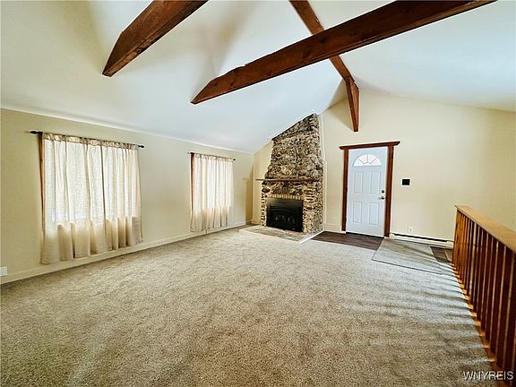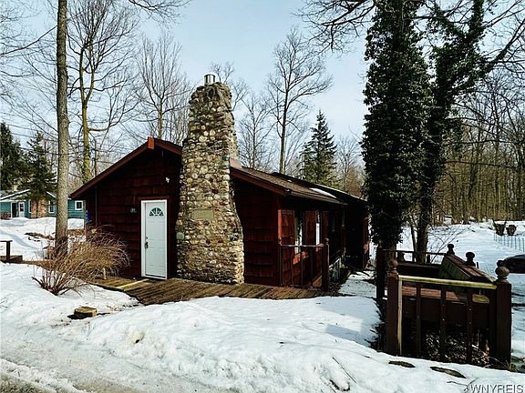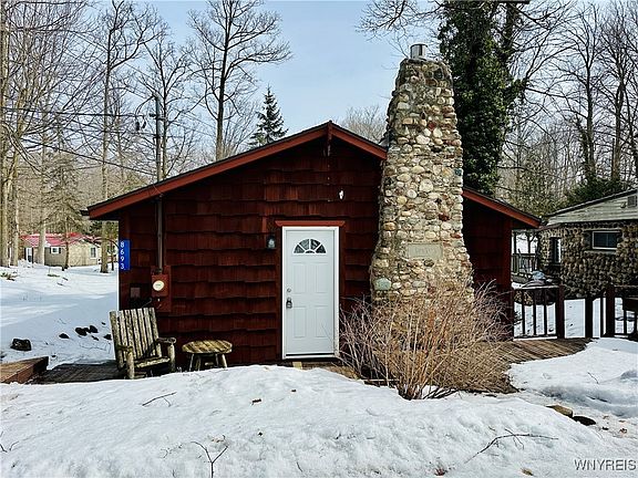 Cozy Cabin Retreat – Newly Renovated & Move-In Ready! Escape to quiet country living with this charming cabin in a serene, wooded community. Beautifully updated with fresh paint throughout, an updated bathroom with a new shower install, brand-new kitchen appliances & countertops, new carpet in the living room & lower-level rooms, plus new vinyl flooring in the entry. Stunning, rustic stone fireplace with a like new gas insert. Primary first-floor bedroom with French doors leading to large, covered exterior deck—perfect for a hot tub! Whimsical loft or reading nook above the kitchen. Two additional lower-level rooms ideal for extra living, shop or office space with laundry connections & walk-in storage. Spacious corner lot with raised decks for outside living & entertainment needs. Dedicated parking area that conveys with the sale, adjacent to the home with shed. Private & peaceful community in the Seven Springs Country Club with access to clubhouse, pond, & walking trails. A nature-filled retreat conveniently located near Batavia with easy commutes to Buffalo & Rochester.