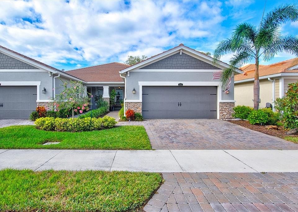 Prepare to be wowed!! Rarely available Seascape Villa with all the bells and whistles you could hope for and quite possibly the best combination of views and privacy in Sunrise Preserve. This is the largest villa model available boasting almost 1700 square feet under air and nearly 2400 sq ft under roof. Featuring 2 bedrooms, 2 designer bathrooms, a dedicated office, inside laundry room, screen enclosed lanai, chef's kitchen, open concept living and dining rooms and a two car garage. Step inside this immaculate like-new home to find 1000 ft views of live oaks with Spanish moss canopied over a meandering community pond and elevated palm tree lined berm. At the front of the home you will find a dedicated office which could be used as a studio, den, or even third bedroom. The room features floor to ceiling Kraft Maid built-ins with quartz countertops and a professionally insulated and sound-proofed wall making it an ideal work-from-home set up. To your right you'll find a well placed laundry room with high end GE Profile washer and dryer in a sleek navy blue color and a stainless steel utility sink. As you enter the living space you can't help but notice the abundance of natural light coming through the floor to ceiling triple sliders that face West for maximum afternoon sun. The open concept kitchen is a chef's dream with a central eat in breakfast bar and best in class appliances including a Fulgor Milano Sofia DUAL FUEL gas range, Fulgor microwave, Bosch dishwasher, Kohler Graze touchless kitchen faucet and LG stainless refrigerator. The kitchen also features under cabinet lighting, a porcelain backsplash and a large kitchen pantry with custom shelving. The focal point of the living room has to be the Simplifire 78” Scion Linear Fireplace with custom niche for the 75” flat screen which are both artfully encased by large format Italian tile and accented by a quartz mantel. The screen enclosed lanai features a Storm Smart Electric/Wi-Fi Powered roll down hurricane screen allowing you to have protection from the elements with just the touch of a button. Importantly, this lanai is one of the very few in the neighborhood that offers picturesque nature views without any other homes facing back towards you making this a very private and quiet place to enjoy morning coffees and afternoon sunsets. The entire house offers full hurricane protection thanks to the upgraded PGT 5500 Series Impact windows. Plus the plantation shutters in the dining room and roll down solar shades on all other windows help keep your energy bills down all year long. There are truly too many upgrades to mention here so please be sure to check out our attached features sheet for the complete list. Sunrise Preserve is an amenity rich, gated community located right in the heart of Palmer Ranch. The community offers a spectacular 5000 s.f. clubhouse, a fully equipped fitness center, resort style "zero entry" pool, spa, 2 tennis courts, 2 Pickleball courts, 2 bocce courts, and grill/firepit areas. Lots of planned activities making meeting your neighbors easy and fun! In addition to ALL the amenities, the monthly fee also includes the ROOF & exterior paint, exterior hazard insurance, as well as grounds maintenance/irrigation. Conveniently located just 2 miles to I75, 20 minutes to Siesta Key, and just minutes to shopping, nearby restaurants, and the Legacy Trail. This one is not like the others. Come see for yourself!
