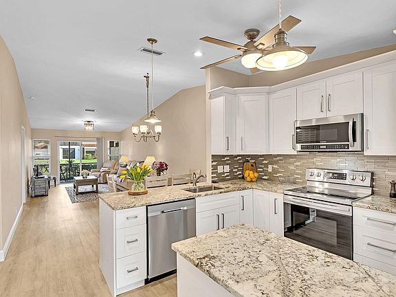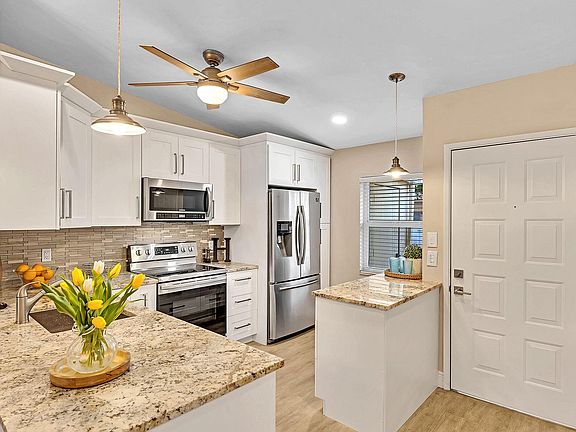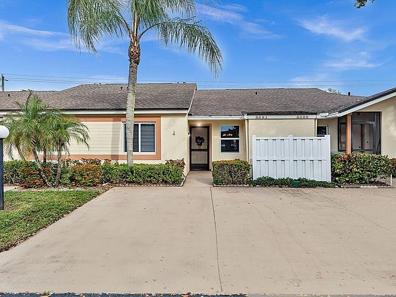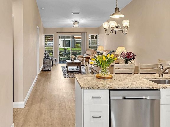 Enjoy living in a peaceful setting with tree lined streets and a multitude of amenities at Whisper Walk of Boca Raton. This 55+ community provides many opportunities to live an active lifestyle; pickleball, tennis, community pool and hot tub, clubhouse, library, walking trails, plus the security of 2 gated entrances. This 2 bedroom, 2 bath unit has been completely updated with white cabinets, granite counters, stainless appliances, lighting fixtures, continuous wood look flooring, interior doors and impact windows. Full size washer and dryer and large screened in patio, are added bonuses!