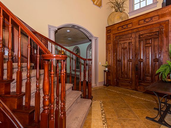 Spectacular Curb Appeal, Stunning Inside w/Amazing Grand Entry! High End Quality with Many Details & Custom Touches,Double Crown Moldings, Cherry Floors, Cherry Cabinets, Theater Room, Exercise Rm, Sauna Ready to Finish, Bonus Rm, Pool Room or Library w/Wood Ceiling, 2 Decks, Backs to Green Space and Creek, level yard for gardening/playtime, Fenced Dog run or gazebo area, shed.