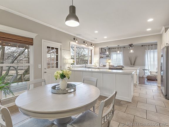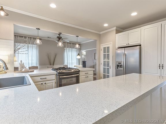 Located in central Owasso, this amazing 5 bedroom home is tucked into a park-like cul-de-sac. Updates include: Custom kitchen w/Cambria quartz countertops & picture window with view of the beautiful backyard featuring a covered patio, deck & mature trees. New roof, water heater, termite protection system & partially new windows within the last 2 years. 5th bedroom could be an office. Formal dining room is spacious & could convert to 2nd living space. If you love windows, you will love this house.