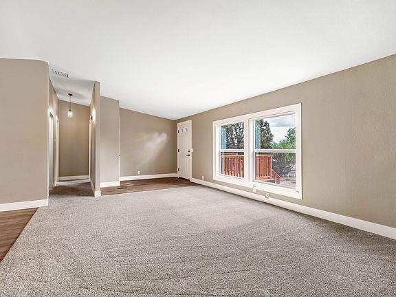 BRAND NEW FULL RENOVATION! Step into this beautiful turn-key home to find it is as good as new. Interior renovations include: luxury vinyl plank, carpet, doors, paint, and more! Kitchen features hickory cabinets, brand new SS appliances, gorgeous butcher block countertops and tile backsplash. Primary bedroom stuns with tall ceilings, tiled step-in shower, double vanity with marble top and HUGE closet. Guest bedrooms ready for family or home office. Tiled tub surround in hall bathroom. Brand new heat pump and furnace, 1 year old. House has all-new cedar siding, metal roof, new windows, and new exterior doors. Expansive front deck for mountain viewing, covered back porch leads to a shady area ready for landscaping. XL garage also has new siding and new roof, 2 car + extra workspace! Property is fully fenced and backs to CRR owned property. You won't want to miss this deal!