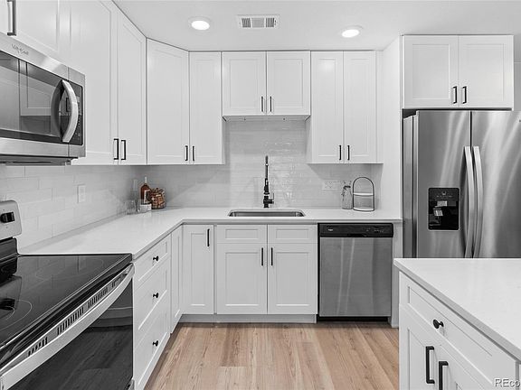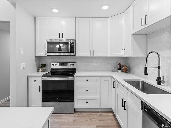 Beautifully remodeled and thoughtfully designed condo in Arvada, blending style and function with every detail carefully considered. The kitchen is entirely new, featuring sleek cabinets, gorgeous countertops, stainless steel appliances, modern lighting, and an eye-catching backsplash. A unique island with a breakfast bar creates an inviting space that opens seamlessly to the dining area and family room.