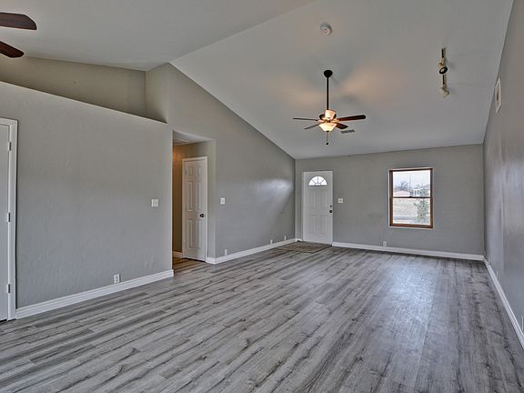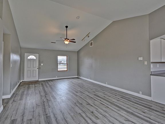 • Interior Features: Ceiling Fan(s), Eat-in Kitchen, Live on One Level, Raised Ceilings 9+ft, Walk-In Closet(s), Wash/Dry Connection, Kit/Din Combo, Counters-Solid Srfc