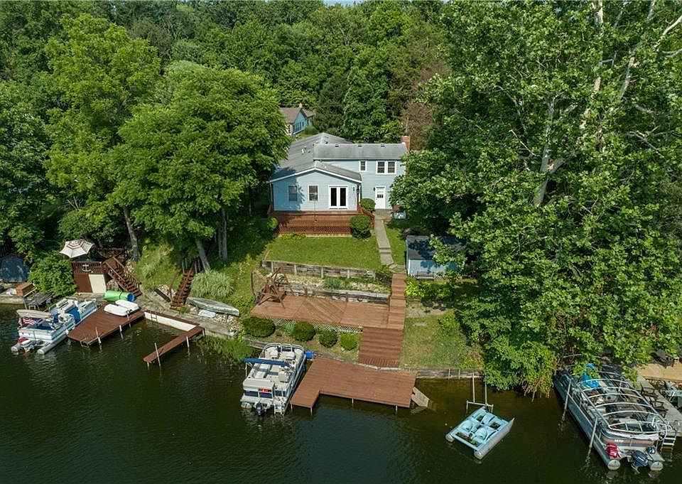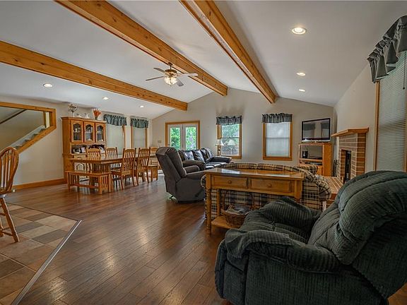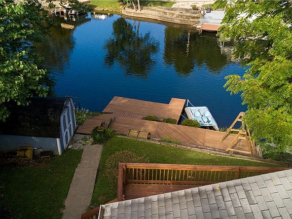 Your search for a wonderful home on East Lake is over! Very easy walk to the lake, multi-level decks to jump off the dock water just inside a clean deep cove off the main body with good views of the action! Open concept great room with cathedral ceilings features wood burning fireplace, room for a large sectional sofa and dining table separated from the kitchen by a breakfast room island. Master bedroom on the main with one big and one small closet with main bathroom right outside the door with walk in shower. Upper bedroom has its own half bath, lower level has been a bedroom, office or living room w/2nd fireplace and walks out out to the patio. Garage will hold 2 cars and outside parking for 3 to 4+ cars.