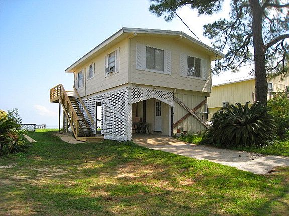 Impressive, Un-obstructed 180' Panoramic Bay View! Quiet, non-rental neighborhood. Across the street (Ft. Morgan Rd) from the Beach Club. Boat launch only 1/4 mile away.Large, open, waterfront yard. Downstairs bedroom and bath installed 2011. Upstairs is in good shape. Current rental, with repeat business.
