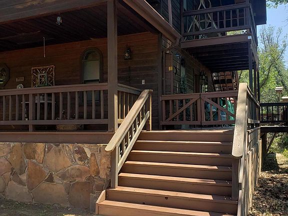 You can own this little piece of heaven right here on earth! This charming unique cabin is perfect for your primary home, get-away secondary property, or as a Bed & Breakfast! Come enjoy this large property, comprised of 3 lots, with nice level land and mature Pine Trees! You will enjoy listening to the lovely sound of Strawberry Creek while you entertain from your huge wrap around rear deck! Other fabulous features include: Vaulted Tongue & Groove Ceiling in Living Room; Wood-Burning Fireplace and Pellet Stove for those cool mountain evenings; Gourmet-Style Kitchen area; Wonderful Front Covered Porch; Fabulous Upstairs Vaulted Loft Area ; Jetted Bath Tub; Storage/Utility Shed; Garden Area; and too many other great items to list! Be sure to see this home today!