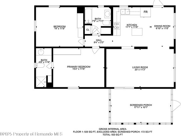 - Total interior livable area: 920 sqft