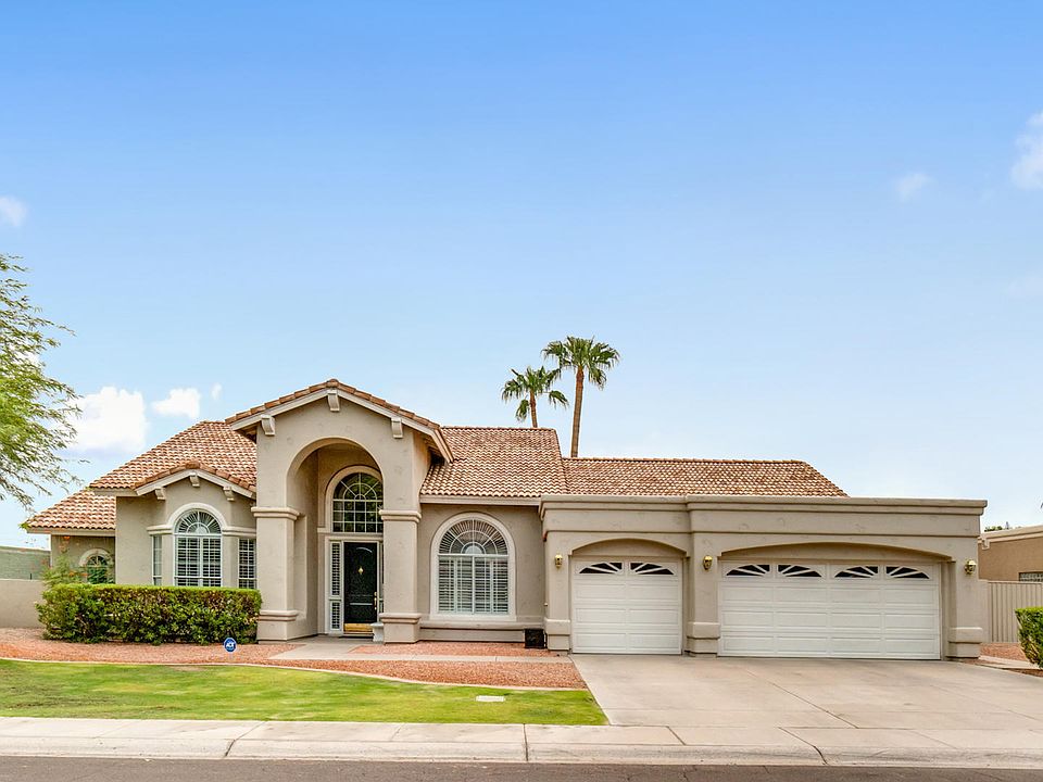 Beautifully remodeled Scottsdale home incorporating exceptional workmanship throughout w/over 200K in renovations. This meticulously maintained home includes; wood flooring, 2 carrera marble fireplaces w/custom built mantles. Awe-inspiring kitchen with Kraftmaid cherry cabinets, Adex tile counter-tops & carrera marble backsplash, the rich cream colored island w/soapstone top perfectly compliments this elegant custom kitchen, GE Monogram SS fridge, Jenn Air oven, micro & 5 burner gas stove top. Remodeled baths w/marble & custom tile. built in wine fridge. 3 car garage w/epoxy floors. Heated pool w/water feature, jacuzzi, large cov'd patio, dbl gates, & a generous sized backyard. Heated pool w/water feature, jacuzzi, large covered patio, double gates, and a generous sized backyard.